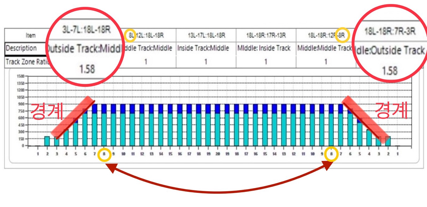 ※ 레인 정비 패턴 표 분석은 그래프와 수치로 미리 예측해 볼 수 있을 뿐 정답이 아니며 실제 투구 시 예측과는 전혀 다른 반응에 헷갈릴 수 있으니 현장에서의 볼 반응과 판단이 더 중요하다는 것을 말씀드립니다.!