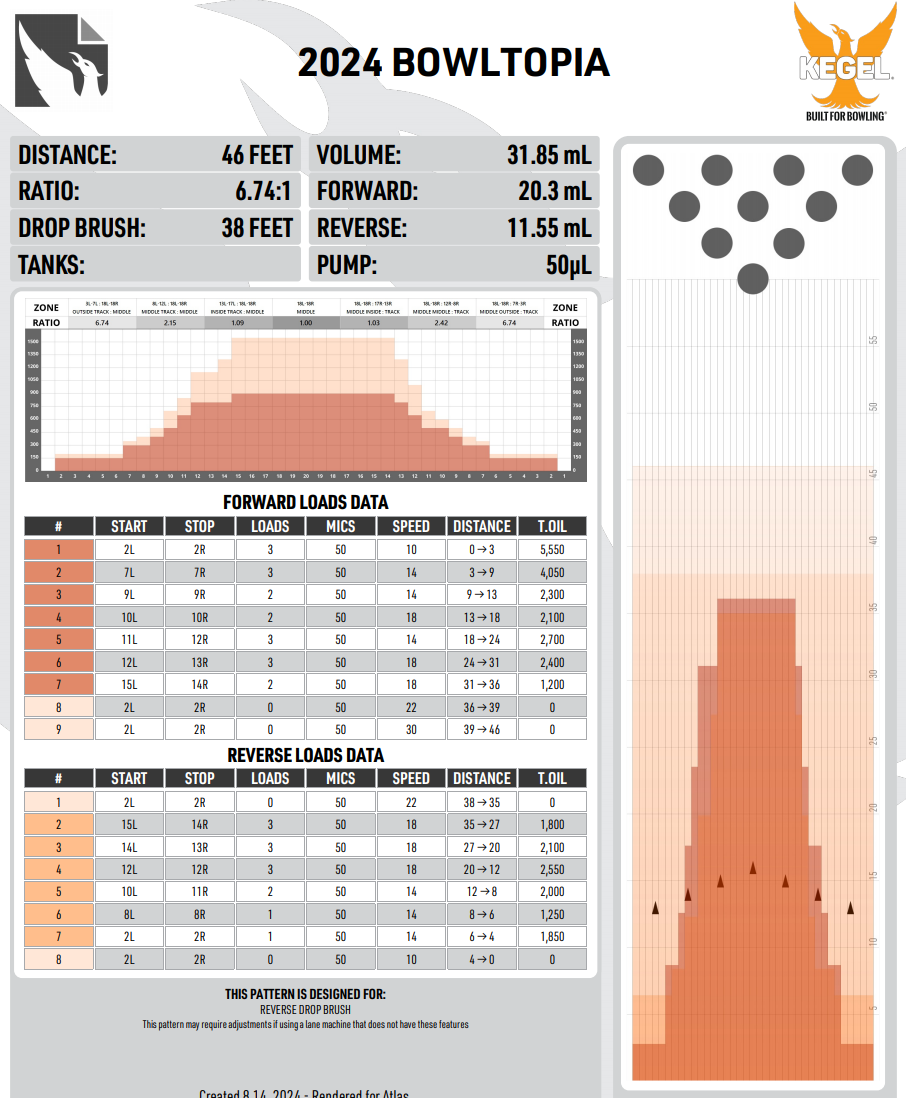 볼토피아 국제볼링 선수권대회 본선 레인패턴은 2024 볼토피아 패턴으로 새롭게 만들어졌습니다.